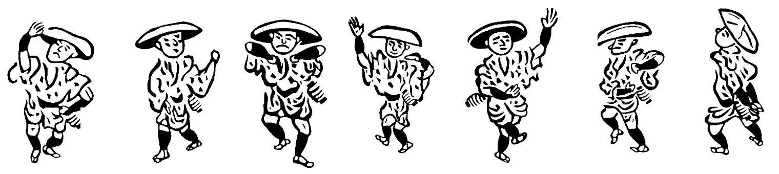 能や歌舞伎の三番叟を真似た姿を表現しています。